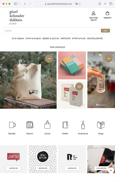 We produce a range of merchandise including posters, tote bags, pins, and more, offering them to our loyal fan base through our flagship store, Güzel Kelimeler Dükkanı.